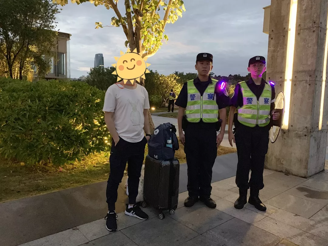 10月6日,深圳市公安局福田分局機(jī)動(dòng)訓(xùn)練大隊(duì)摩托車中隊(duì)隊(duì)員楊斌、翁紹允在巡邏途中發(fā)現(xiàn)一個(gè)行李箱和一個(gè)書(shū)包無(wú)人認(rèn)領(lǐng),他們便在原地等待失主,約半小時(shí)后失主前來(lái)認(rèn)領(lǐng)行李,在核實(shí)失主身份后物歸原主,失主表示衷心感謝。