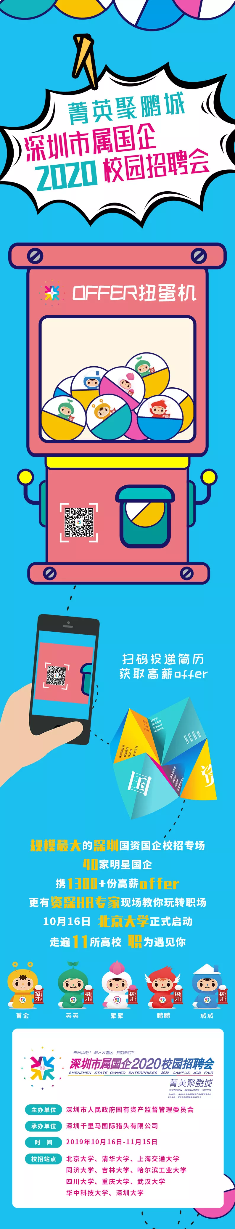 見(jiàn)圳客戶端·深圳新聞網(wǎng)2019年10月10日訊 據(jù)“深圳國(guó)資”微信公眾號(hào)消息,深圳市屬國(guó)企開(kāi)啟“花式”組團(tuán)校招模式,“菁英聚鵬城”深圳市屬國(guó)企2020校園招聘會(huì)來(lái)了!