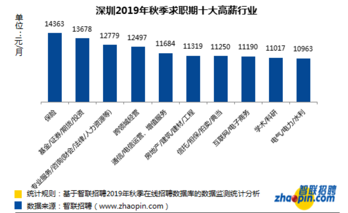 深圳今秋求職平均薪酬為10276元,十大高薪行業(yè)擱這兒了!