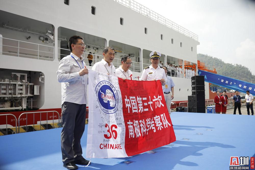 在活動現(xiàn)場,南極科考隊向深圳市人民政府贈送了比例1:100“雪龍2”號船船模紀念品,隨后,南極科考隊向招商局集團贈送全體科考隊員簽名的隊旗等。此外,黃敏副市長率隊登船參觀、慰問考察隊員,并與考察隊員親切交流座談。