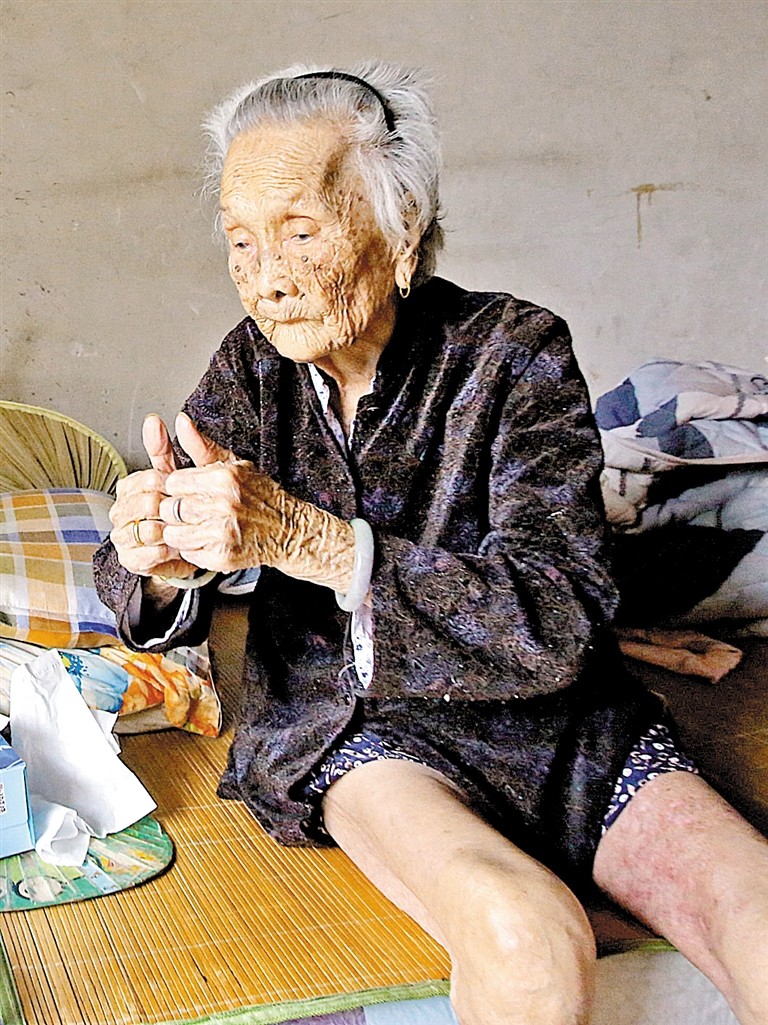 9月底,陽光明媚的上午,101歲的陳汝金像往常一樣坐在家里,陽光照進屋子,照在她的臉上,一切顯得平靜安詳。福永街道鳳凰社區(qū)工作站的工作人員帶著鮮花和水果,和記者一起來到老人家里。這一天,老人的外孫女文小姐和孫媳婦也正好回來看望她。