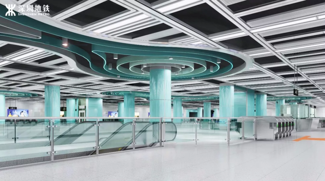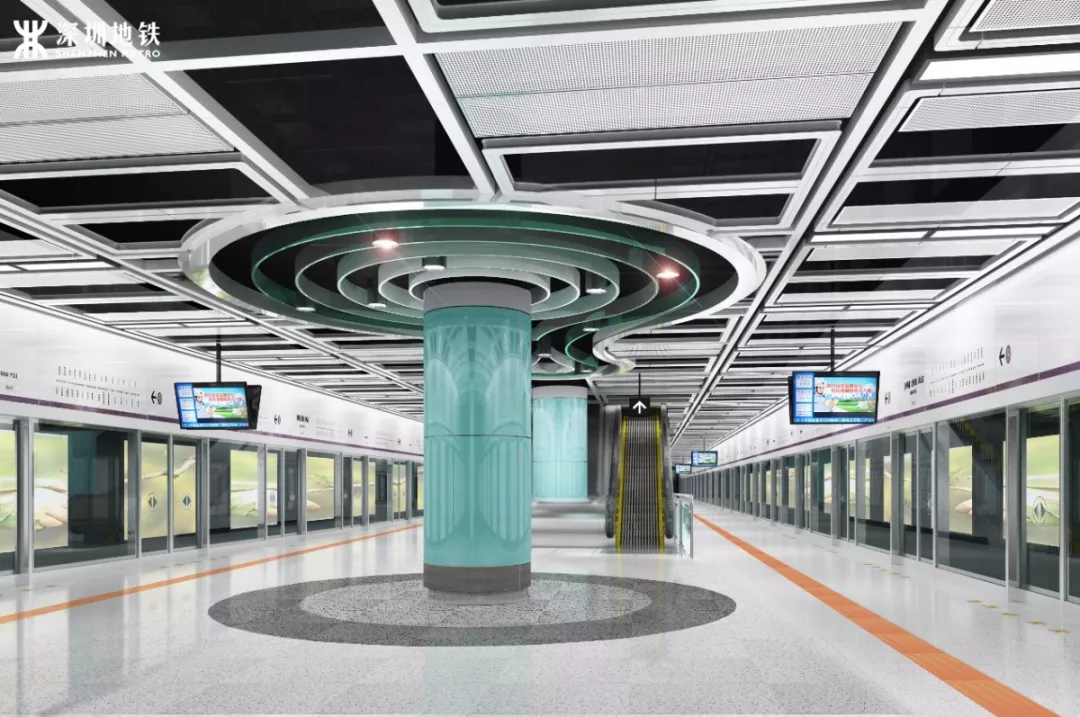 9號線二期全線方案在統(tǒng)一的設(shè)計理念下,將特色車站做到一站一景,同時結(jié)合了站點周邊特色元素,重點站體現(xiàn)區(qū)域文化特色,打造其成深圳體現(xiàn)“宜居科技、智慧生活”的特色線路。