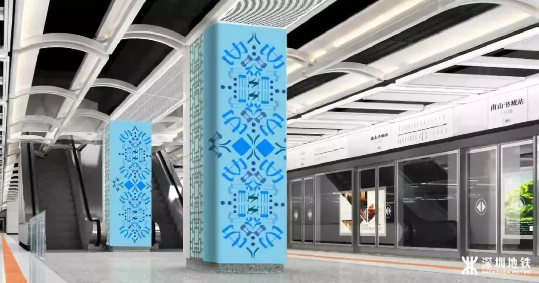 原9號線一期線路的裝修設(shè)計主題為“宜居生活”,體現(xiàn)的是深圳宜居生態(tài),綠色生活的概念,設(shè)計元素選取的是深圳嶺南及客家文化。