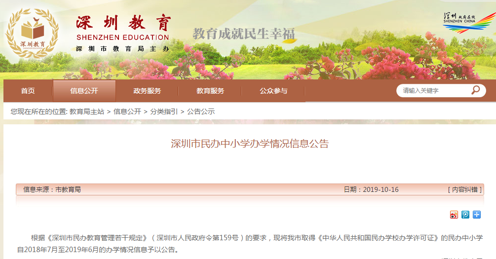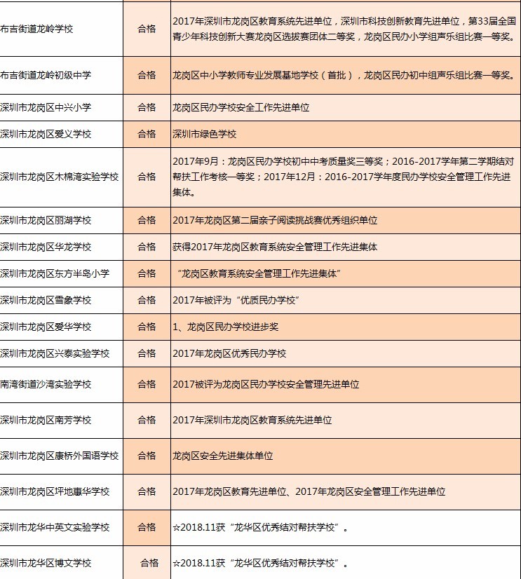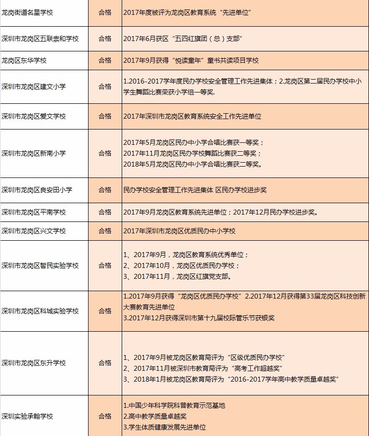 近日,深圳教育局在其官網(wǎng)發(fā)布深圳市民辦中小學(xué)辦學(xué)情況信息公告。最新公告顯示:2018年度年檢結(jié)論為“不合格”的學(xué)校共有8所,“基本合格”的有12所,其他均為“合格”或“不滿一年未年檢”。其中,不合格的8所學(xué)校分別為:深圳市富源學(xué)校、深圳市展華實驗學(xué)校、深圳市龍華區(qū)愛孚實驗學(xué)校、深圳市龍華區(qū)寶文學(xué)校、深圳市龍華區(qū)牛欄前學(xué)校、深圳市龍華區(qū)六一學(xué)校、深圳市龍華區(qū)博恒實驗學(xué)校和深圳市龍華區(qū)偉民小學(xué)。主要涉及違規(guī)招生問題。