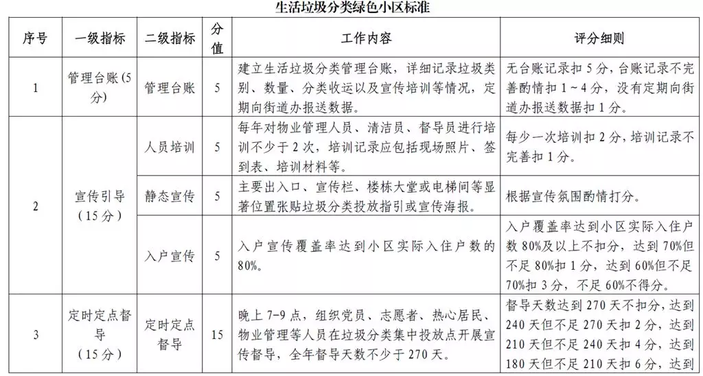 針對單位激勵對象不同,《辦法》還詳細(xì)制定了《生活垃圾分類綠色單位標(biāo)準(zhǔn)》《生活垃圾分類綠色學(xué)校標(biāo)準(zhǔn)》《生活垃圾分類綠色小區(qū)標(biāo)準(zhǔn)》等要求;針對個人激勵對象,也明確提出了垃圾分類督導(dǎo)員、志愿者、教師和其他從業(yè)人員等不同要求。