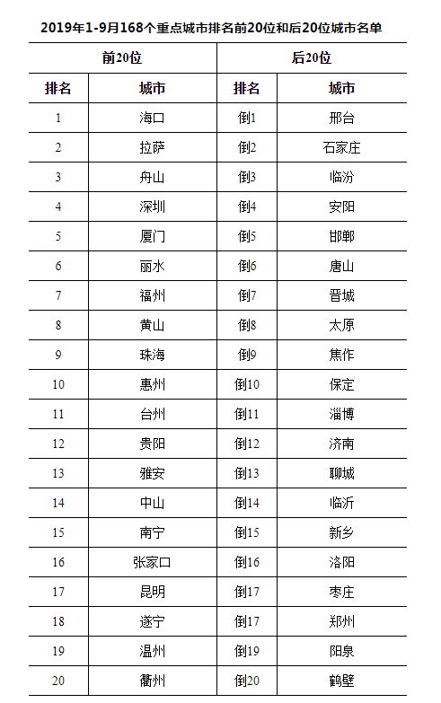 原標(biāo)題:1-9月全國空氣質(zhì)量深圳排第四,前20名廣東占4席