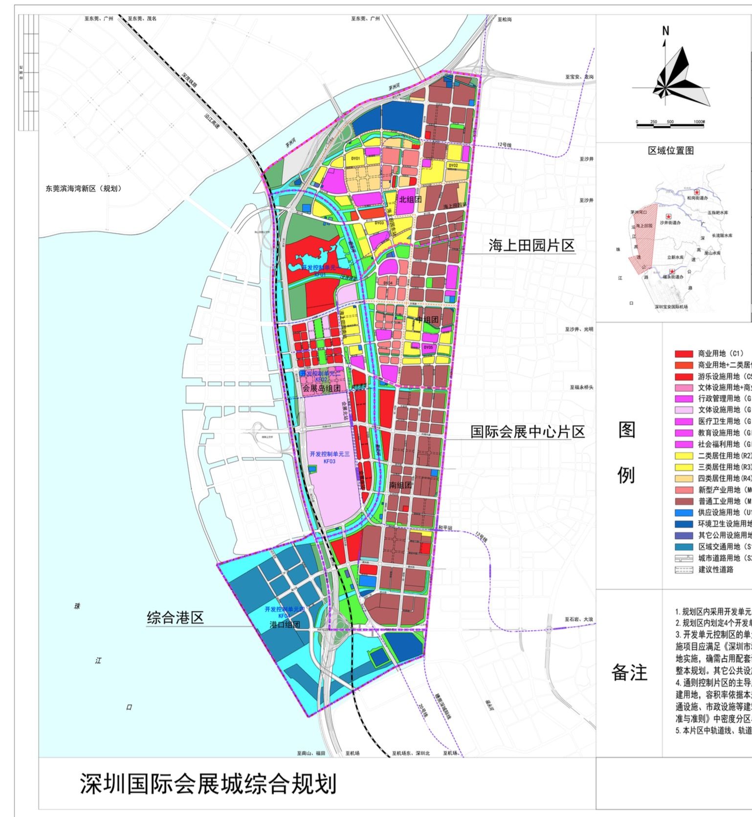 “深圳國際會(huì)展城”范圍北抵茅洲河、東至松福大道、南臨福永河、西側(cè)主要以廣深沿江高速公路為界,并包括規(guī)劃寶安綜合港區(qū),范圍共計(jì)22.57平方公里,規(guī)劃區(qū)劃分為三個(gè)片區(qū):國際會(huì)展中心片區(qū)、海上田園片區(qū)和寶安綜合港區(qū)。