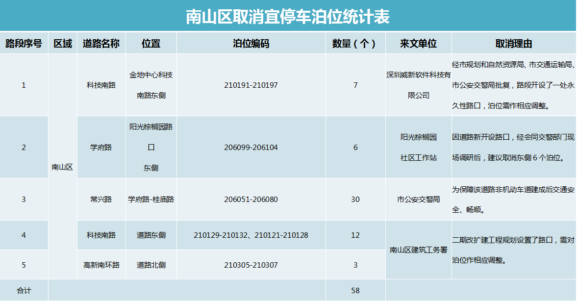 深圳市交通運輸局、深圳市公安局交通警察局表示,本次取消上述6個區(qū)部分宜停車泊位情況公示時間為2019年10月28日-2019年11月26日。在此期間,如對上述調(diào)整方案有任何意見或建議,可通過以下方式反饋:
