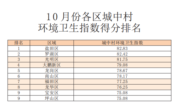 10月份城中村環(huán)境衛(wèi)生指數(shù)測評成績發(fā)布