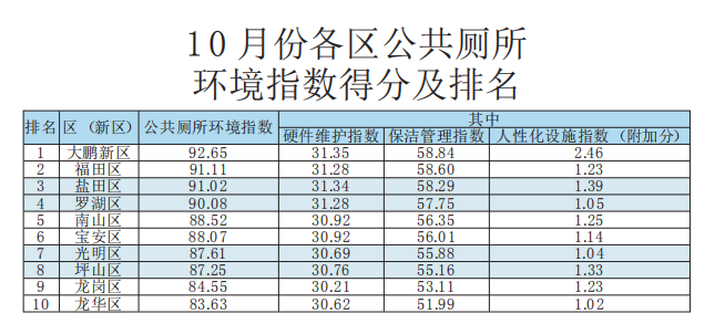 10月份公共廁所環(huán)境指數(shù)測評結(jié)果發(fā)布