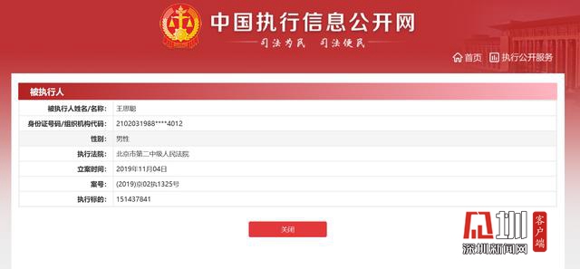 有媒體發(fā)現(xiàn)中國執(zhí)行信息公開網(wǎng)上于11月4日新增了王思聰?shù)囊粭l被執(zhí)行人信息,執(zhí)行標的為1億5143萬7841元,執(zhí)行法院為北京市第二中級人民法院。巧合的是,網(wǎng)友發(fā)現(xiàn)王思聰微博設置為半年可見。