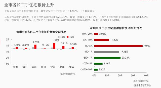 各區(qū)二手住宅報(bào)價(jià)盤源情況,來自深圳中原研究中心