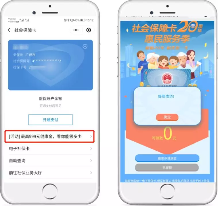 綁定電子社??ê螅赏ㄟ^社??ㄔ斍轫?,回到活動(dòng)首頁,點(diǎn)擊“提現(xiàn)到零錢”,馬上提現(xiàn)。