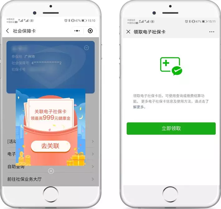 關(guān)聯(lián)完成后,點(diǎn)擊彈窗領(lǐng)取電子社???,在電子社保卡領(lǐng)取頁面點(diǎn)擊“立即領(lǐng)取”。