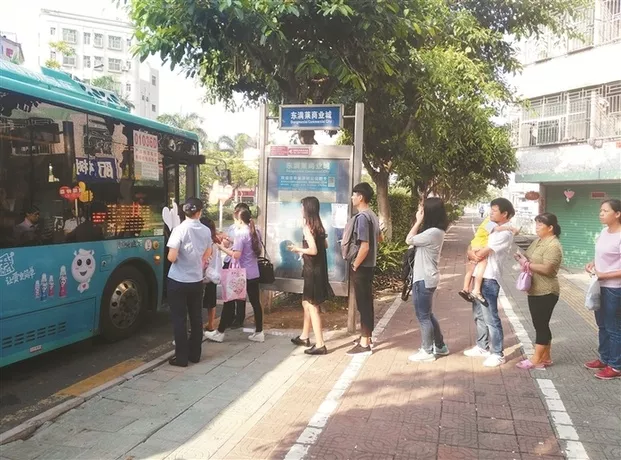 深圳有很多公交站臺(tái)雖然面對(duì)人多車(chē)少的現(xiàn)實(shí),但乘車(chē)人自覺(jué)排隊(duì),按秩序上車(chē),在客觀上加快了公交車(chē)周轉(zhuǎn)的速度。有著“文明城市”稱號(hào)的深圳,在最易擁擠的地方,體現(xiàn)出了文明。