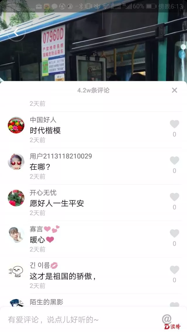 暴雨中,一輛深圳公交車(chē)被湍急的水流圍困,為了安全轉(zhuǎn)移車(chē)上的乘客,司機(jī)冒雨到附近找來(lái)兩塊木板,在站臺(tái)和公交車(chē)間搭起一座“木橋”,車(chē)上乘客沿著“木橋”被攙扶著一個(gè)個(gè)安全地撤離。而這一幕,被乘客拍成短視頻發(fā)到抖音,短短一星期,播放量達(dá)400多萬(wàn),獲得點(diǎn)贊254萬(wàn),評(píng)論多達(dá)4萬(wàn)多條,成為抖音上最火爆的“深圳好聲音”之一。