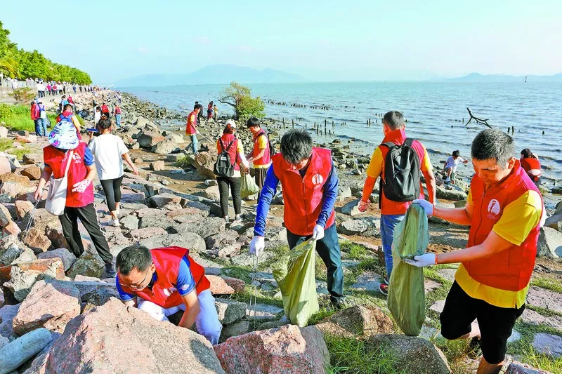 ▲“紅馬甲”清潔臺(tái)風(fēng)“山竹”過(guò)后的街道
