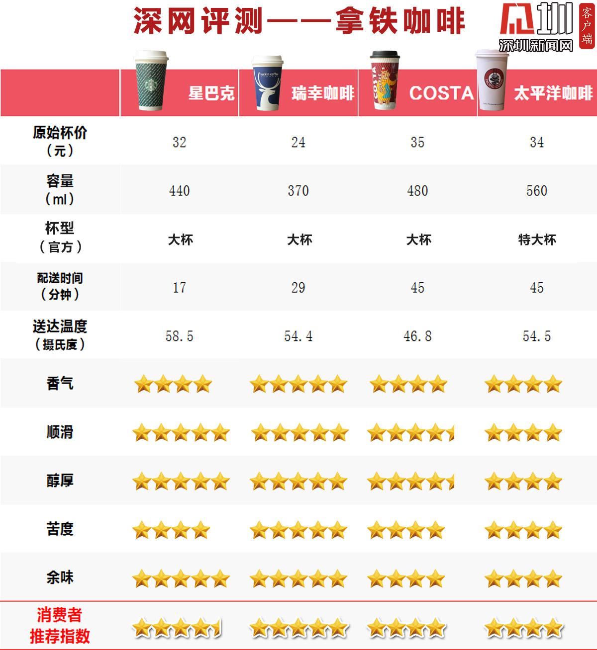 為了一探究竟,深圳新聞網(wǎng)測評小組聯(lián)合專注產(chǎn)品質(zhì)量、消費服務(wù)專業(yè)組織中國質(zhì)量萬里行,邀請了來自新聞、餐飲、IT以及其他行業(yè)的20位咖啡愛好者,對深圳市面上主流的星巴克、瑞幸、太平洋、COSTA 4個品牌,2種口味【“拿鐵(熱)”、“美式(熱)”】的咖啡,通過主觀+客觀的形式進(jìn)行了測評。