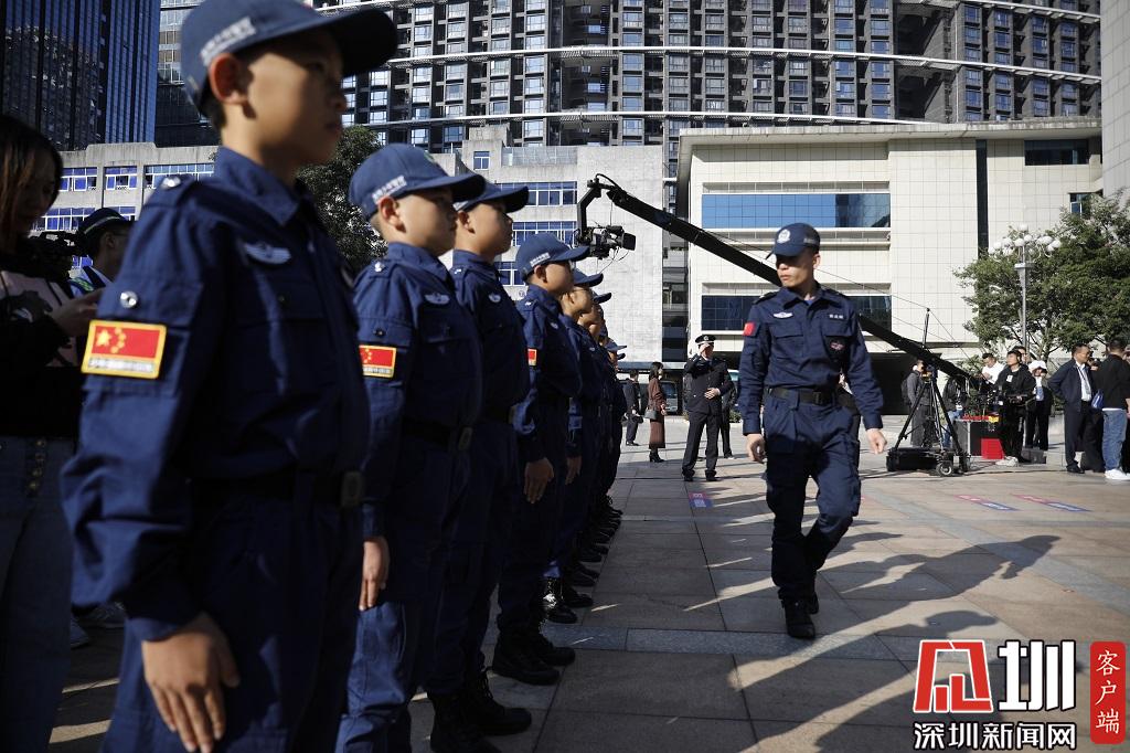 少年警隊和深圳市公安局領(lǐng)導(dǎo)合影留念。