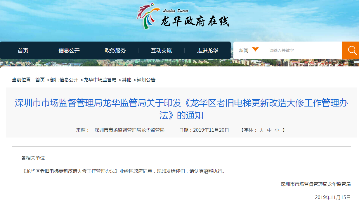 老舊電梯更新每臺補(bǔ)貼最高20萬!符合條件的單位可向深圳市市場監(jiān)督管理局龍華監(jiān)管局聯(lián)系報名,報名截止時間為:2019年12月13日。