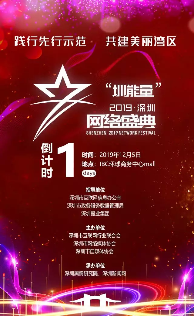 為了展示深圳2019年度優(yōu)秀網(wǎng)絡(luò)典型,釋放榜樣示范作用,弘揚(yáng)網(wǎng)絡(luò)正能量,形成爭相譜寫新時代、人人傳播正能量的生動氛圍,深圳網(wǎng)絡(luò)盛典應(yīng)運(yùn)而生。