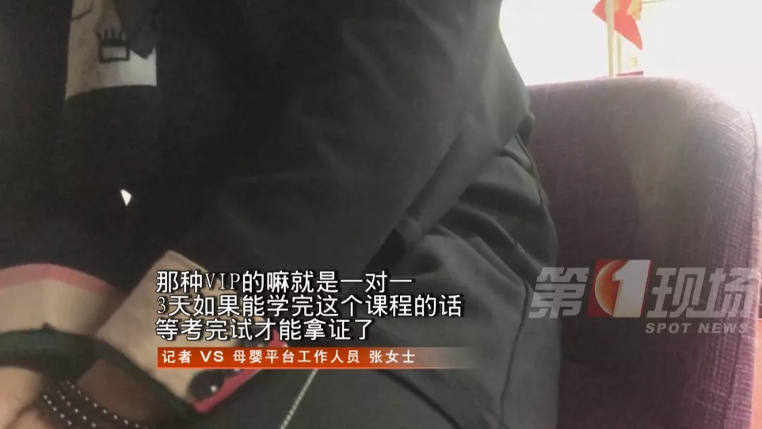 工作人員繼續(xù)介紹,有證書的保姆育嬰師起薪至少會高出500元。如果記者現(xiàn)在交錢學(xué)三個班,他們還可以贈送價值4500元她們研發(fā)的APP課程,并表示他們這家機構(gòu)在深圳這一塊是前五名的。