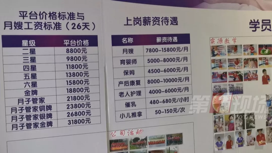 隨后兩位工作人員開始向記者介紹培訓(xùn)套餐,一個月學(xué)三門課,6800元有月嫂、催乳、小兒推拿三本證書,30天封閉學(xué)習,包吃包住。