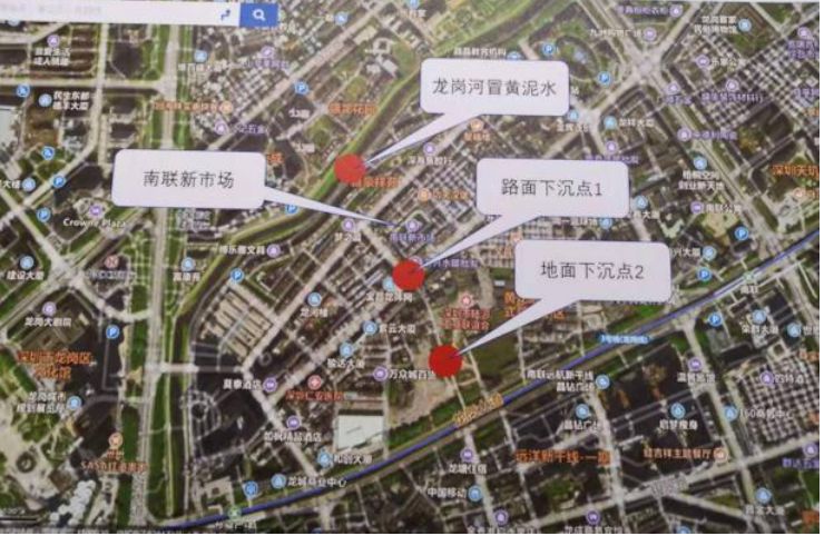12月5日,龍崗街道龍園路附近有三個地點分別出現(xiàn)局部地面沉降、河道黃泥水冒出等情況,經專家初步判斷,主要因地下水文條件變化、溶巖坍塌等地質變化引起。