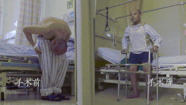 牽動全院人心的第三次手術(shù)在9月18日進(jìn)行。這一步要將李華彎成C字型的脊柱拉直。手術(shù)進(jìn)行了幾乎一天,醫(yī)生們找準(zhǔn)脊椎最彎曲的兩處地方,截斷,重新拼接成直線。手術(shù)完成后當(dāng)天晚上,李華20年來第一次能躺平睡覺了!