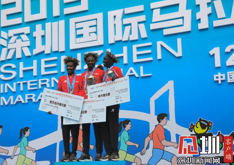 全程男子冠軍Tadese Tola Woldegeberel和第二名獲獎者擁抱。