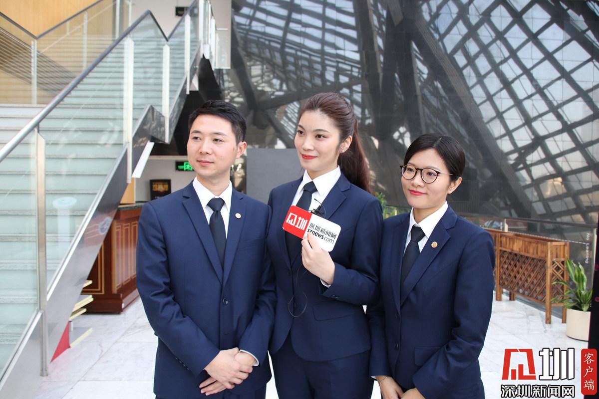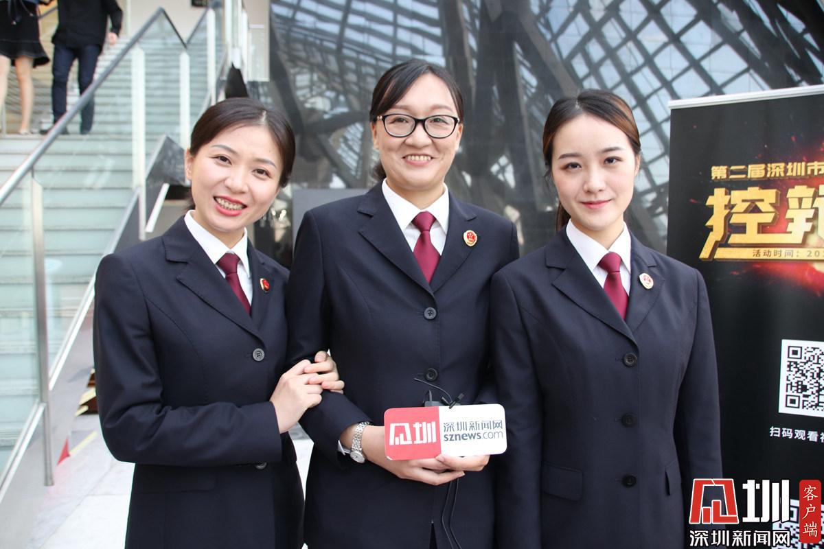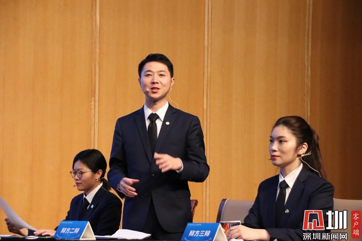 第一個(gè)辯題結(jié)束后,辯方辯手接受深圳新聞網(wǎng)記者采訪(fǎng)。從左到右依次為卜祥波、李銳杰、艾青三位律師。