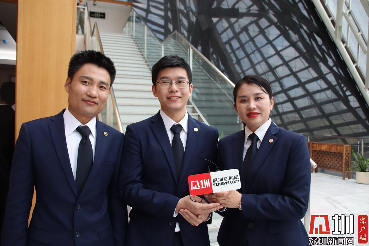 辯方第二隊(duì)接受深圳新聞網(wǎng)記者采訪(fǎng),從左到右分別是鄧銳,李?lèi)偅瑒⑺棘幦宦蓭煛?/span>