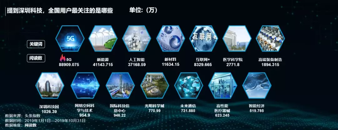 2019年是我國5G商用元年,深圳更是被列入首批5G城市名單,加之因華為的存在,深圳在5G研發(fā)及應用上領先全球,備受關注。5G同時還是提到深圳科技時,最受全國網(wǎng)友最關注的關鍵詞。