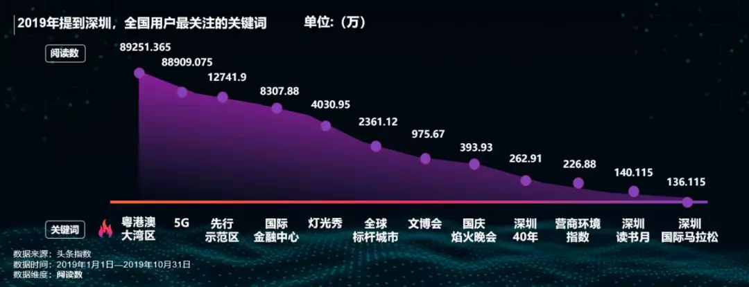 數(shù)據(jù)顯示,2019年提到深圳,全國網(wǎng)友最關注的三大關鍵詞是“粵港澳大灣區(qū)”、“5G”及“先行示范區(qū)”。