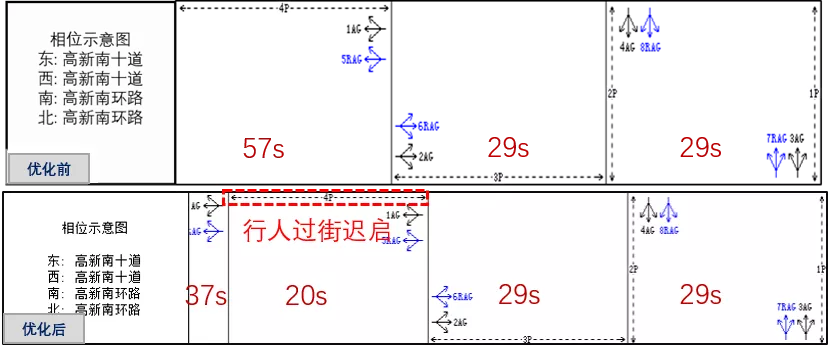早高峰優(yōu)化前后配時方案