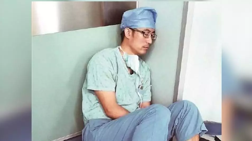 8月,深圳龍崗中心醫(yī)院骨關(guān)節(jié)科的一位醫(yī)生代宇因一張照片在網(wǎng)上走紅。圖片中,他穿著手術(shù)服,坐在手術(shù)室的地上,靠墻睡著了。