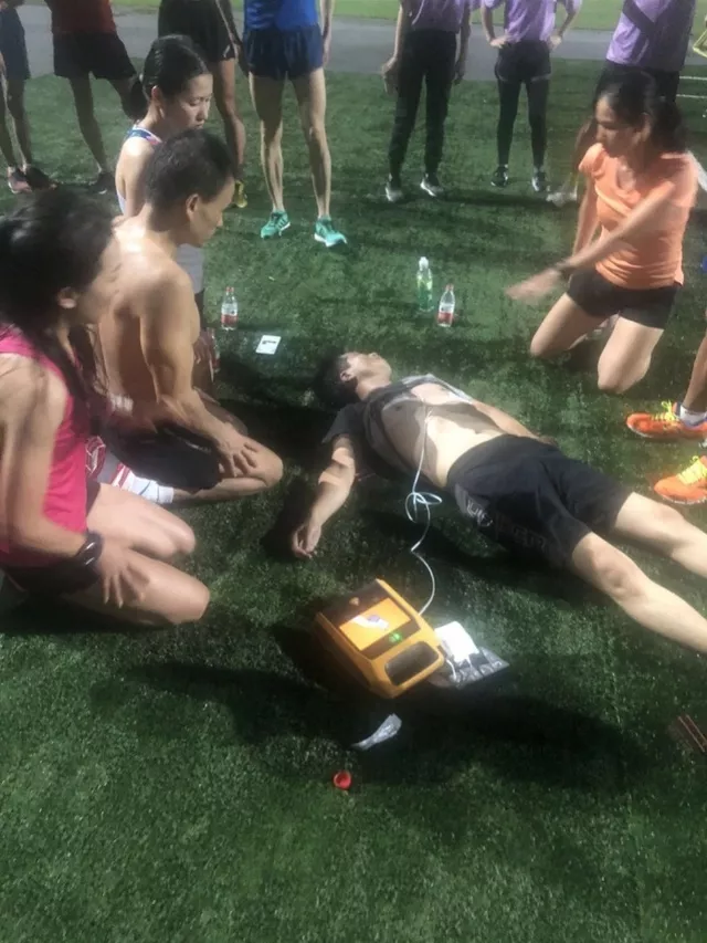 在深圳市體育館,42歲的孫先生跑完4公里,做平板時(shí)突發(fā)心梗,心跳呼吸驟停。深圳市體育館保安見狀,立馬拿來(lái)救命神器“AED”,在旁邊跑步的深圳晶報(bào)記者張國(guó)防和教練邊崎也立馬上前救人,隨后市民易李霞,深圳市第二人民醫(yī)院規(guī)培醫(yī)生盧秋敏、北大深圳醫(yī)院放射科醫(yī)生梁建樂(lè)等也加入救援,成功挽回孫先生生命。