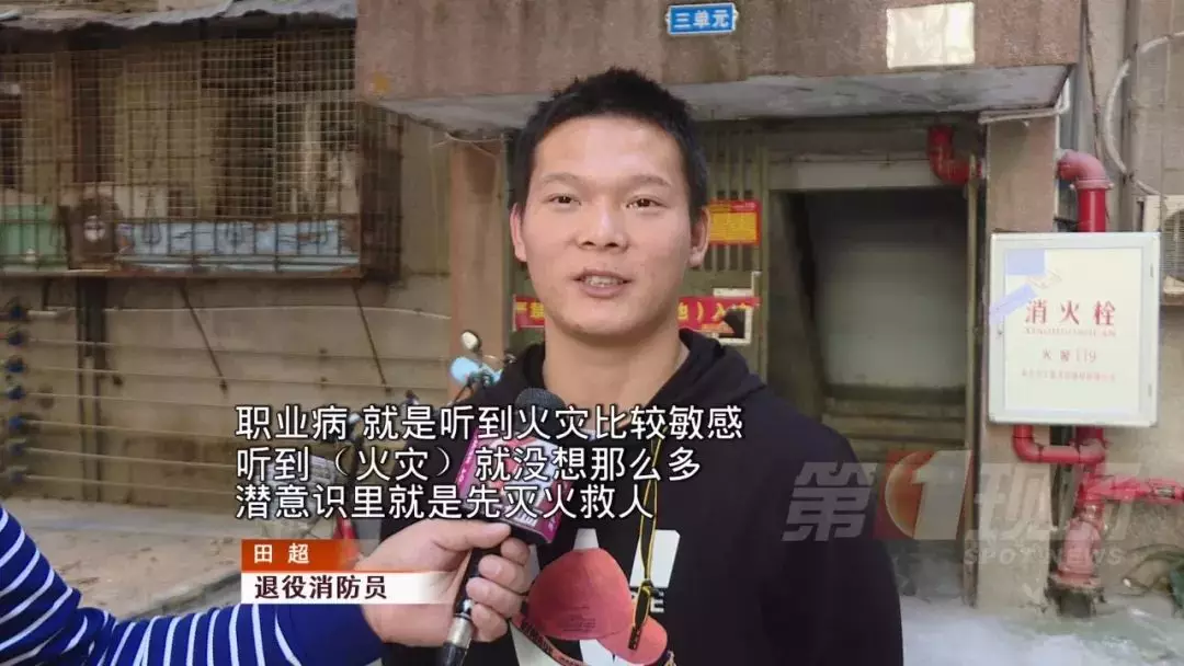 原來(lái),田超是一名退役的消防員,一聽到火災(zāi),第一時(shí)間想的就是滅火救人。他的專業(yè)素養(yǎng)幫助了他,先將頂上的障礙物掃一掃,把火壓回去,再慢慢往里面攻。