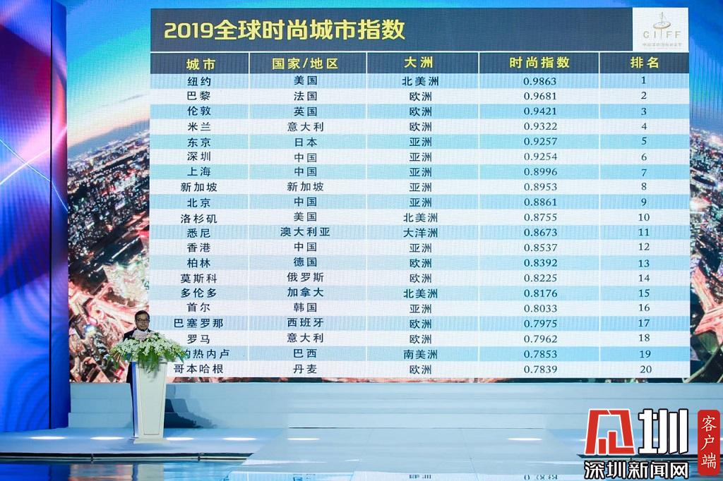 2019全球時(shí)尚城市指數(shù)公布,深圳位居第六。