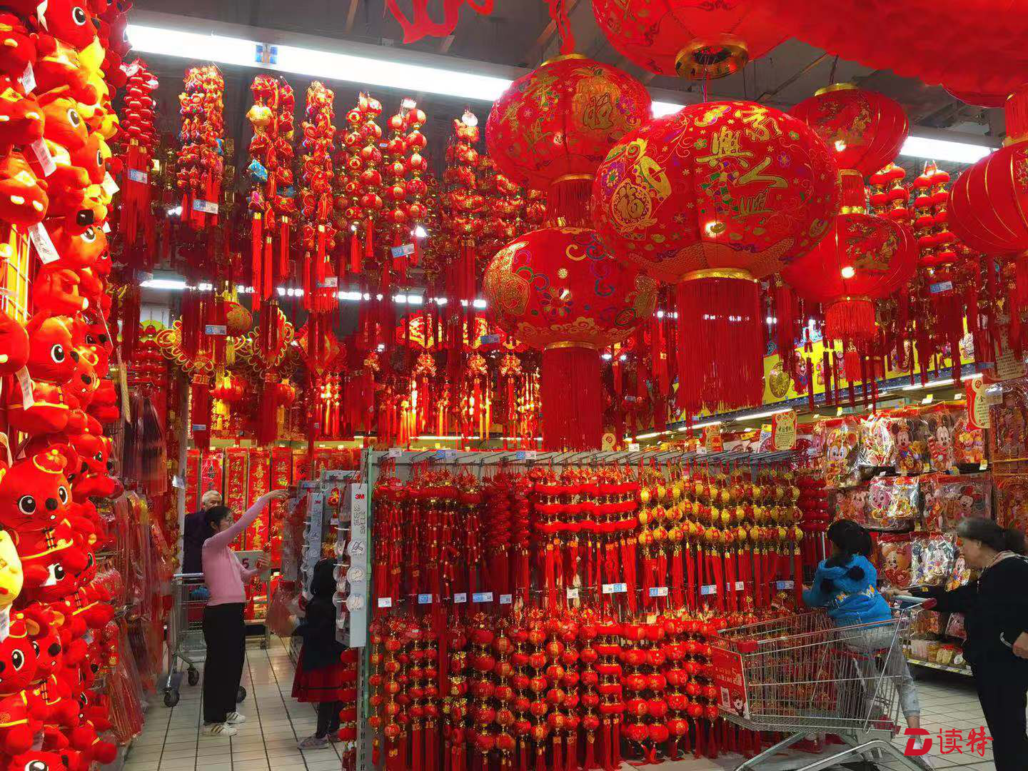 記者在華潤(rùn)萬(wàn)家、沃爾瑪、家樂(lè)福等商超門店看到,干果飲料、糖果餅干、酒水等各式各樣的年貨禮盒禮包被整齊擺放在顯眼位置,并標(biāo)貼著優(yōu)惠價(jià)簽;年貨街以及春聯(lián)、中國(guó)結(jié)、紅燈籠等春節(jié)飾品區(qū)等購(gòu)物場(chǎng)景一一上線,干貨、腌制食品等熱門年貨也加入了促銷陣營(yíng);“恭喜發(fā)財(cái)”等新春標(biāo)配曲目已在某商超開始播放,讓人可以感受鼠年春節(jié)將至的氛圍。