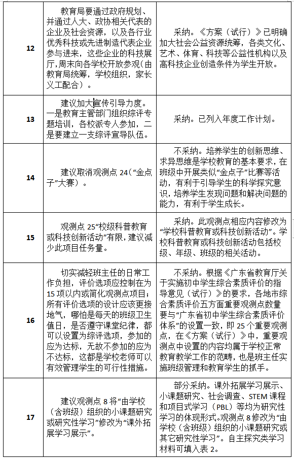 原標(biāo)題:最新進(jìn)展!深圳初中綜評(píng)新方案征集到34類(lèi)建議,其中19類(lèi)被采納或部分采納