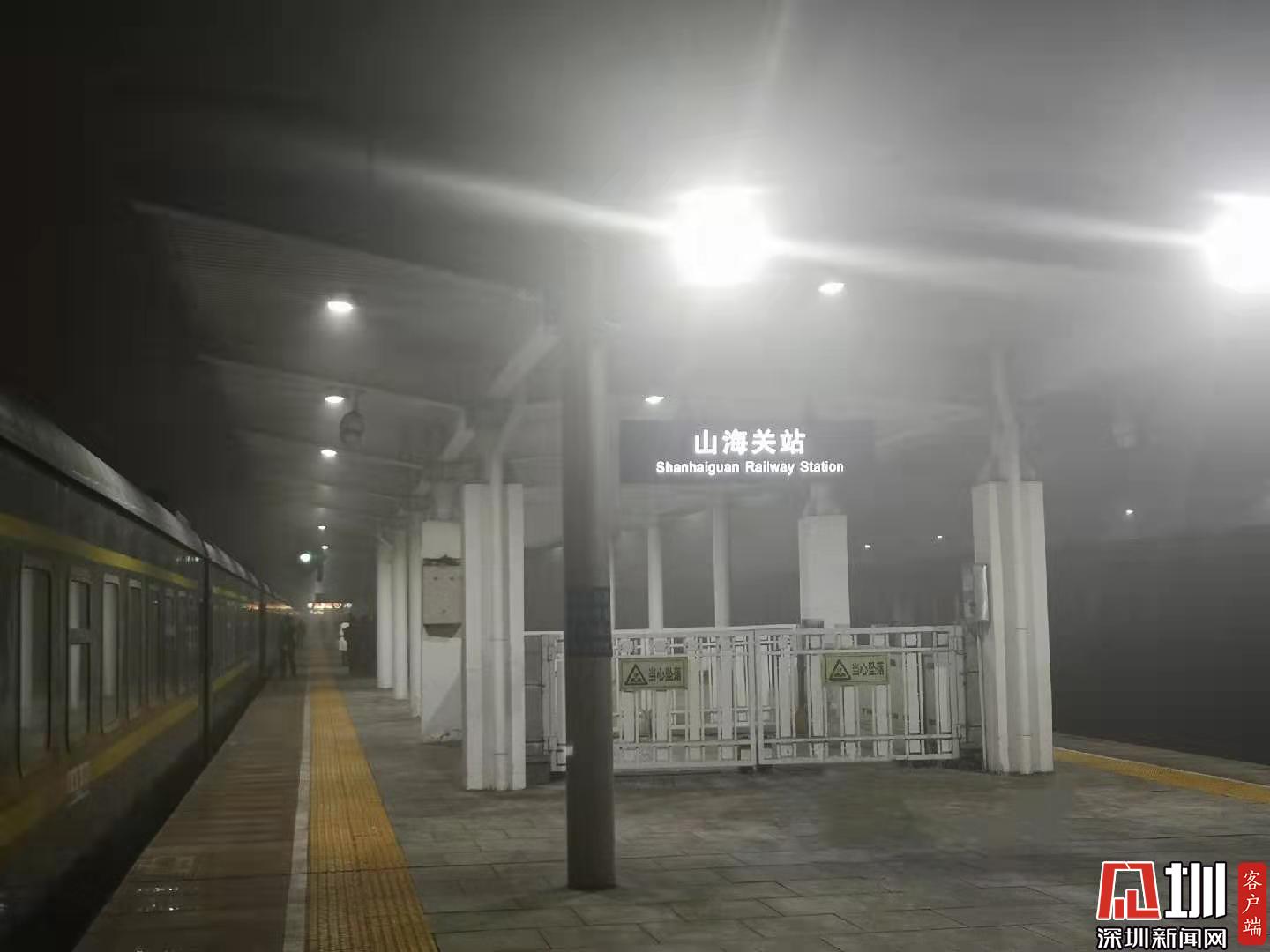 第二天夜晚,11點21分,我到山海關啦?。。?!激動的跑到外面拍一張照片,是熟悉的味道,東北味!一出門刮著臉疼的味!下一站駛入我大遼寧!