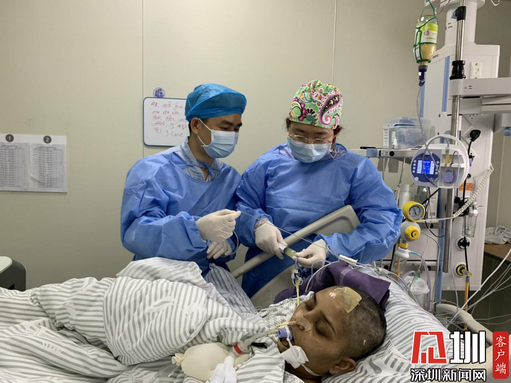 護士秦寶邦和韓天琦正在給印度籍女教師喂藥和水。此前,她因化膿性鏈球菌感染引發(fā)了重癥肺炎,被轉送入醫(yī)院。在ICU的全力救治下,她的病情已經有了很大的好轉。