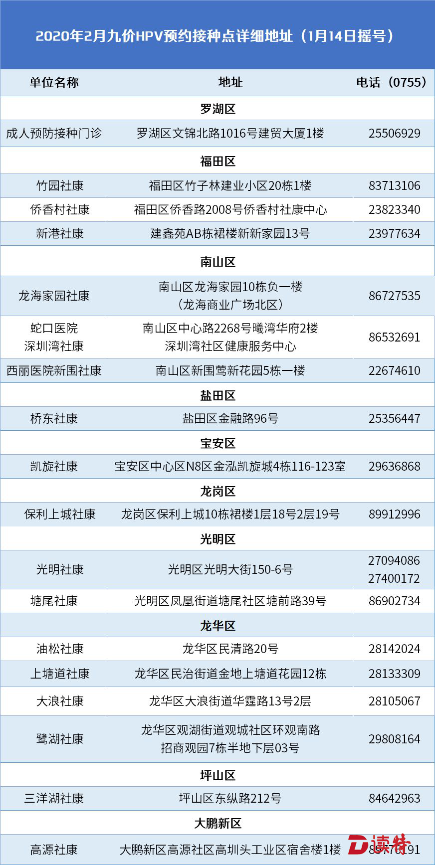 深圳特區(qū)報(bào)2020年1月31日訊 為貫徹執(zhí)行《廣東省推出防控新型冠狀病毒感染的肺炎疫情一級(jí)響應(yīng)16條措施》,經(jīng)專家評(píng)估并報(bào)深圳衛(wèi)健委同意,決定全市預(yù)防接種門診的開診時(shí)間,暫推遲到2月14日后,具體時(shí)間視防控工作需要另行通知。搖中今年1月九價(jià)HPV疫苗的小姐姐,不用擔(dān)心,2月14日后再撥打社康咨詢電話,和工作人員協(xié)商修改這次的打針時(shí)間。