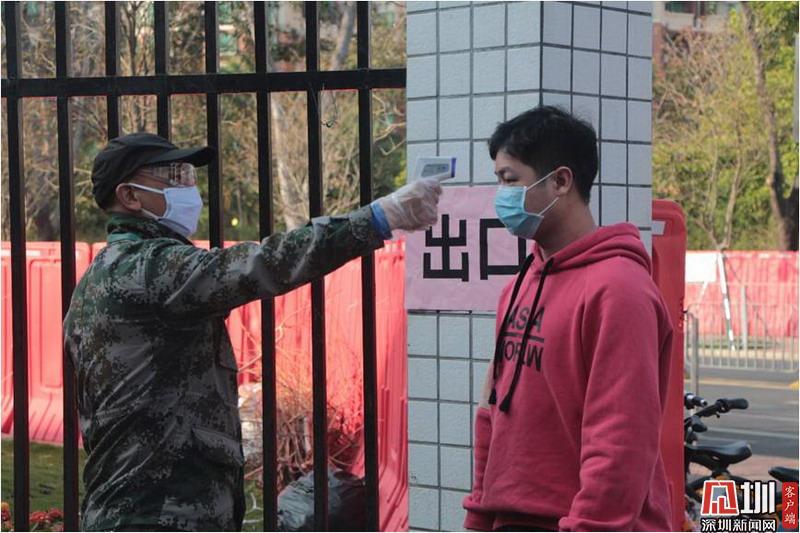 福田農(nóng)批市場的管理人員正在為到訪的市民測量體溫