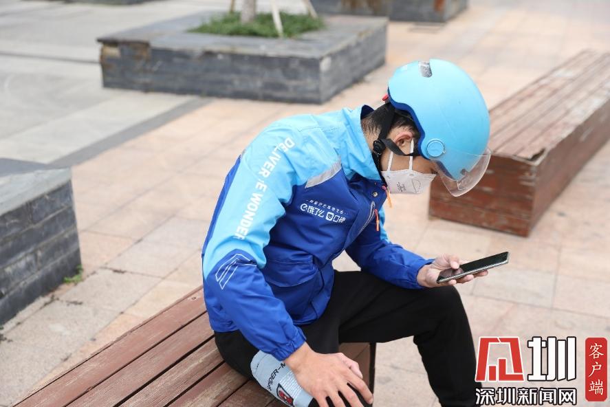 王彭輝在等待派單無事做時,喜歡坐在路邊椅子上休息,上網(wǎng)消磨消磨時間。