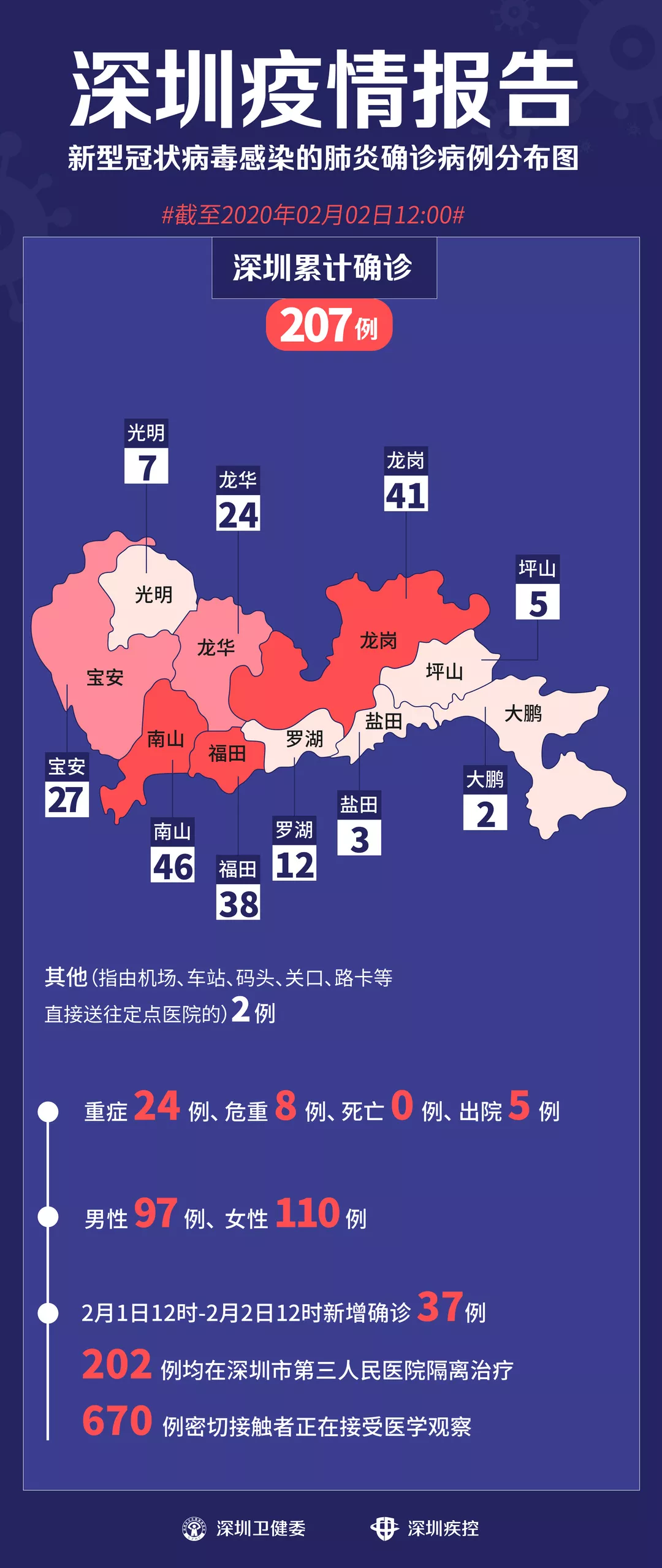 2月1日12時(shí)-2月2日12時(shí),深圳新增新型冠狀病毒感染的肺炎確診病例37例。