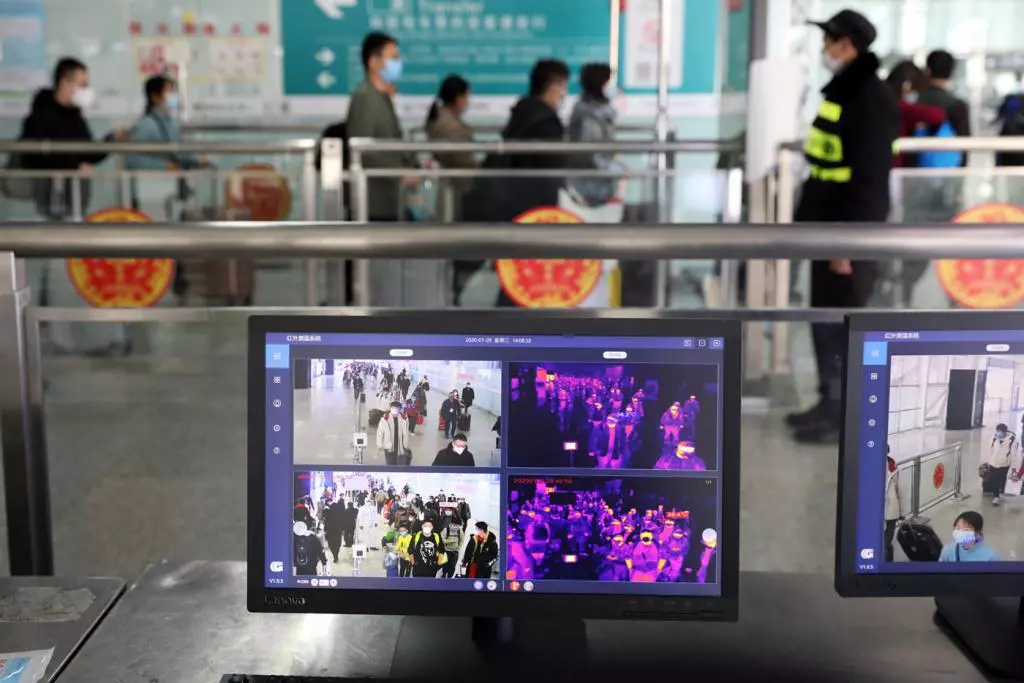 出站旅客的體溫實(shí)時顯示在電腦屏幕上,一旦發(fā)現(xiàn)體溫異常人員,系統(tǒng)馬上自動發(fā)出警告。