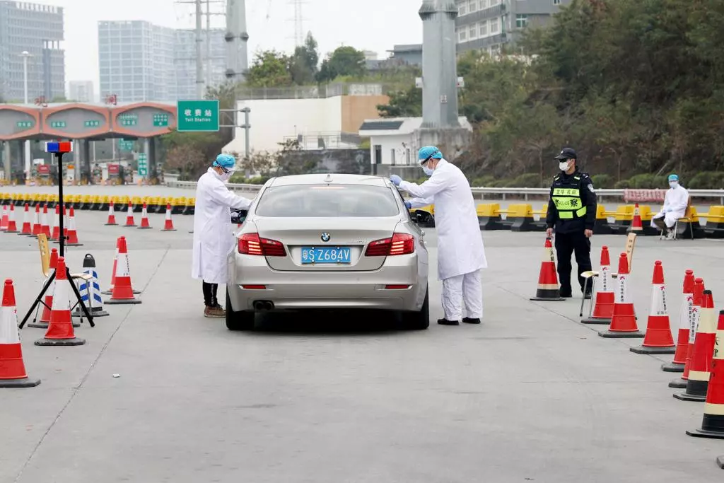 醫(yī)務(wù)人員對入深車輛乘員進(jìn)行二次測溫。