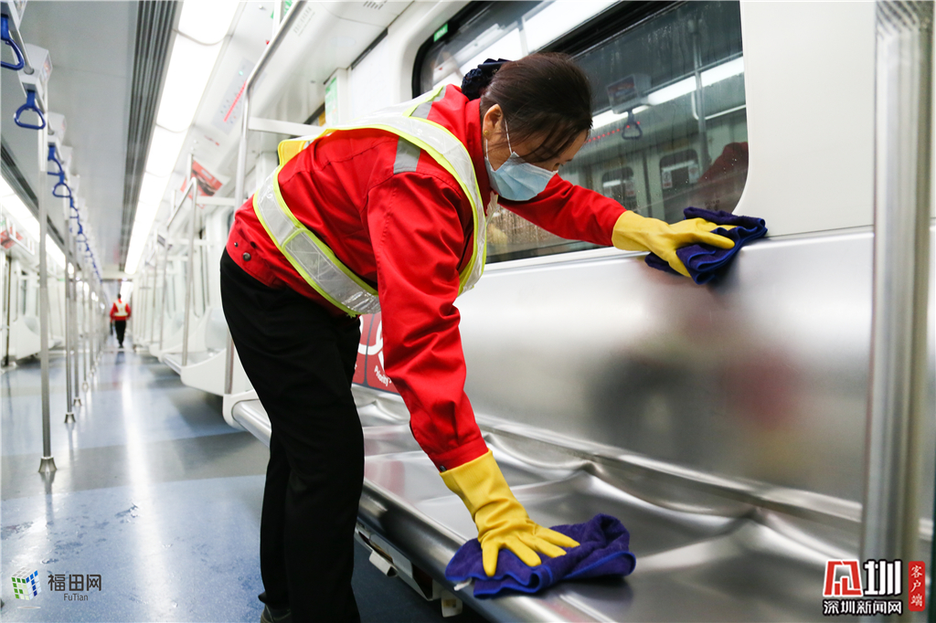 張軍香用剛剛兌好84消毒液,細(xì)心地為奔跑一天的列車消殺除菌。這段時間的23點-次日的7點,早上從這個區(qū)域車間駛出的第一批次列車就是保潔員張軍香所在團(tuán)隊消殺清潔過的。16瓶高濃度的84消毒液,勾兌出近600斤消毒水,6個人分三組,140米的車廂,這段時間的每個夜晚,在這座城市最重要的交通工具上默默耕耘。